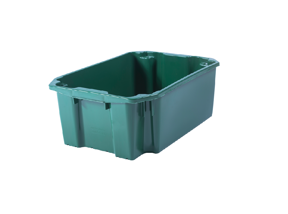 Leírás A mezőgazdaságban elterjedt 40 liter névleges űrtartalmú műanyag láda. Egymásra, ill. üresen egymásba rakható.