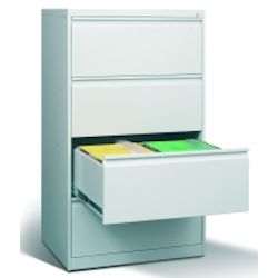 Központi zár (két kulccsal); kényelmes fiókfogantyú; könnyen kihúzható fiókok; A4-es függeszthető irattartóknak; fiókonként 80-100 db fér el.