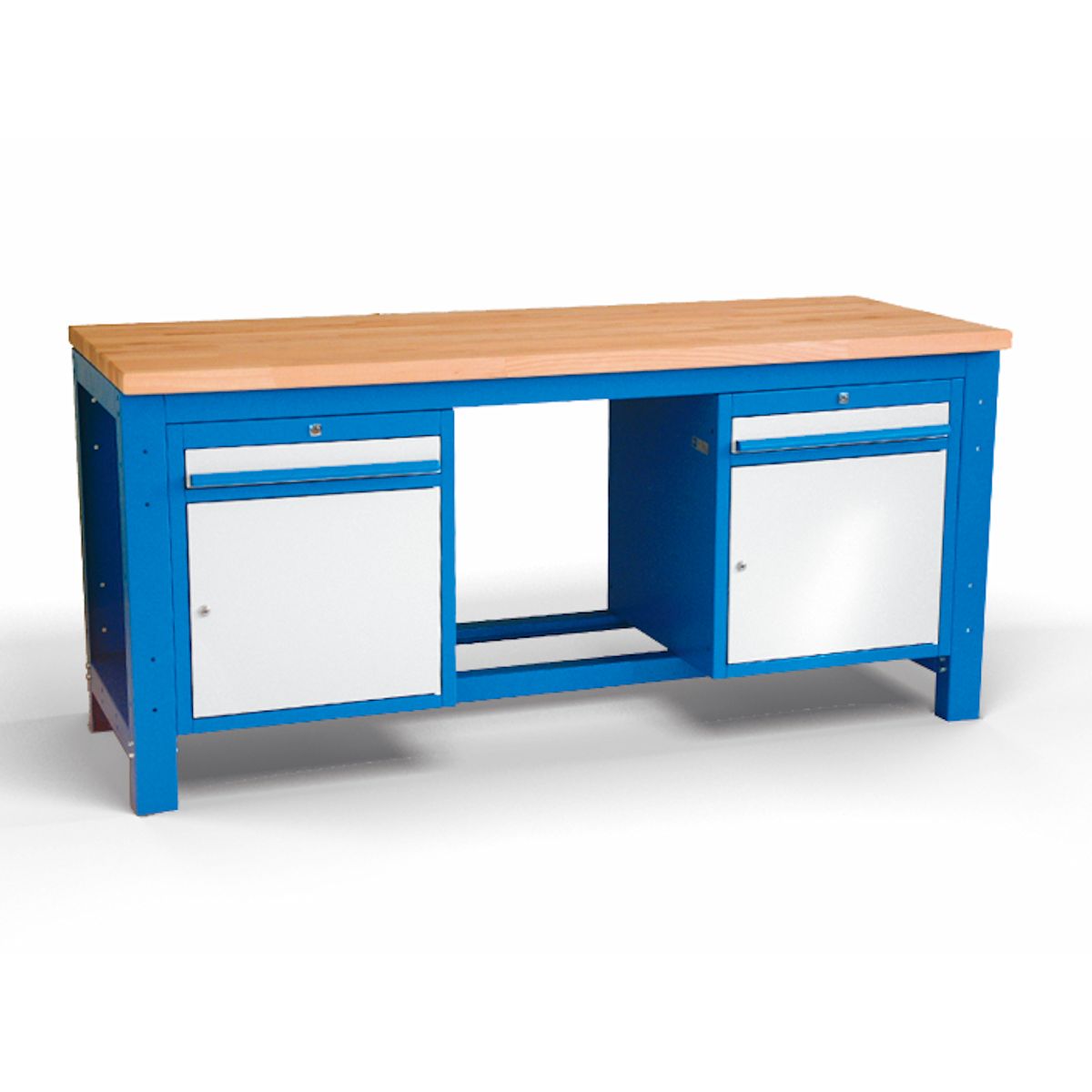 40 mm vastagságú munkalap, rétegelt lemez, vagy műanyaggal kasírozott munkalap kidolgozással; könnyen gördülő, golyókosaras fióksín; központi zár; állítható magasságú polc; 100%-ig kihúzható, 80 kg-ig terhelhető fiókok.