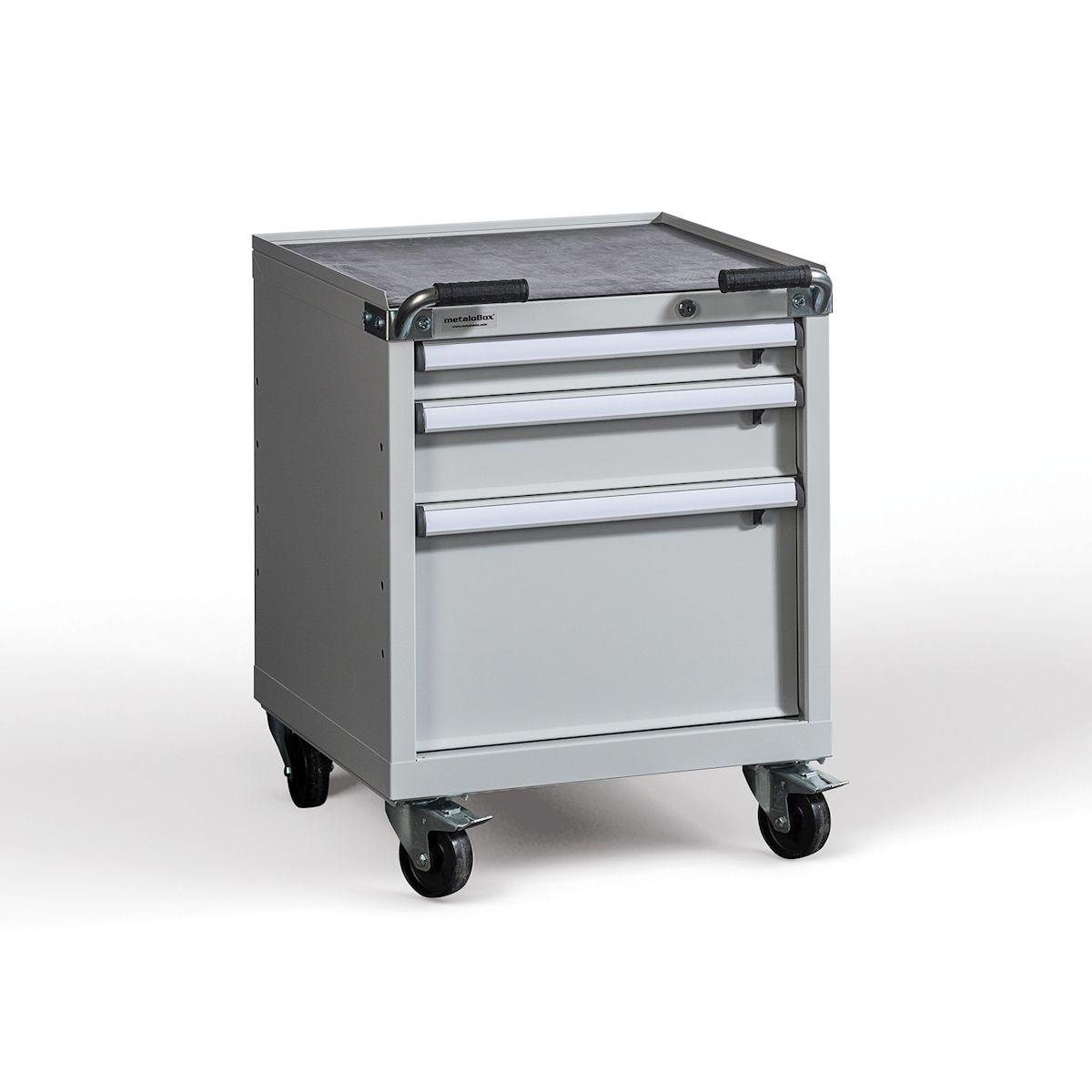 Ergonomikus fogantyú (gurulós konténer); központi zár, két kulccsal; műanyag fül a fiókok biztonságos nyitása érdekében (gurulós konténer); 4 db kerék, amelyből a 2 hátsó fékezhető (gurulós konténer); biztonsági perem (gurulós konténer); gumilap tető a szekrény védelméért (gurulós konténer); feliratozható fiókfogantyú.