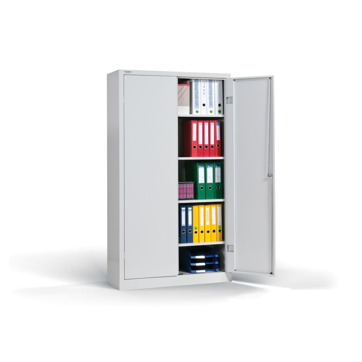 2 ponton záródó biztonsági zár (két kulccsal); 4 db állítható magasságú polc; polcok teherbírása 30 kg/polc.