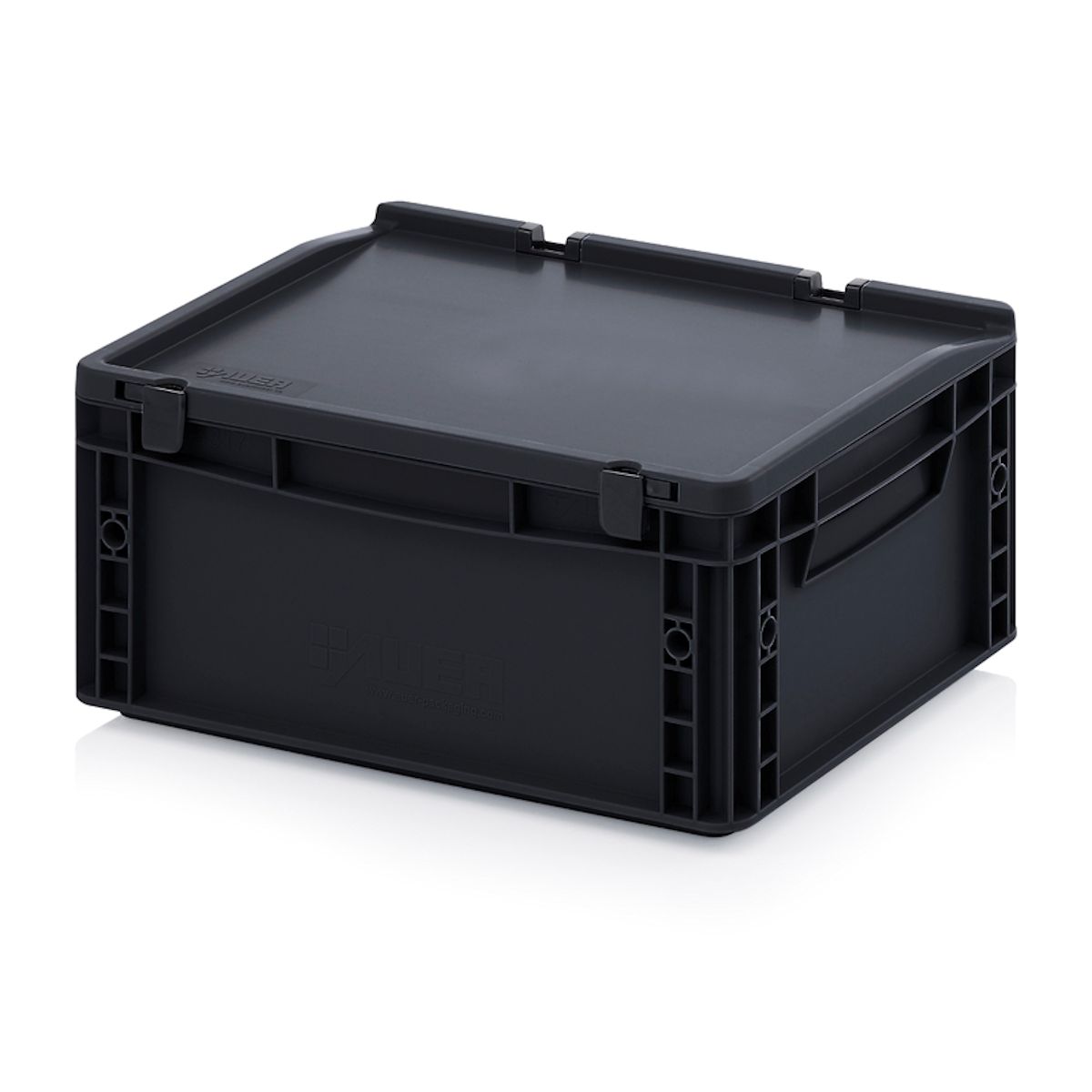 TermékekVezetőképes euro tárolóládákESD EURO TÁROLÓLÁDÁK ZSANÉROS FEDÉLLEL