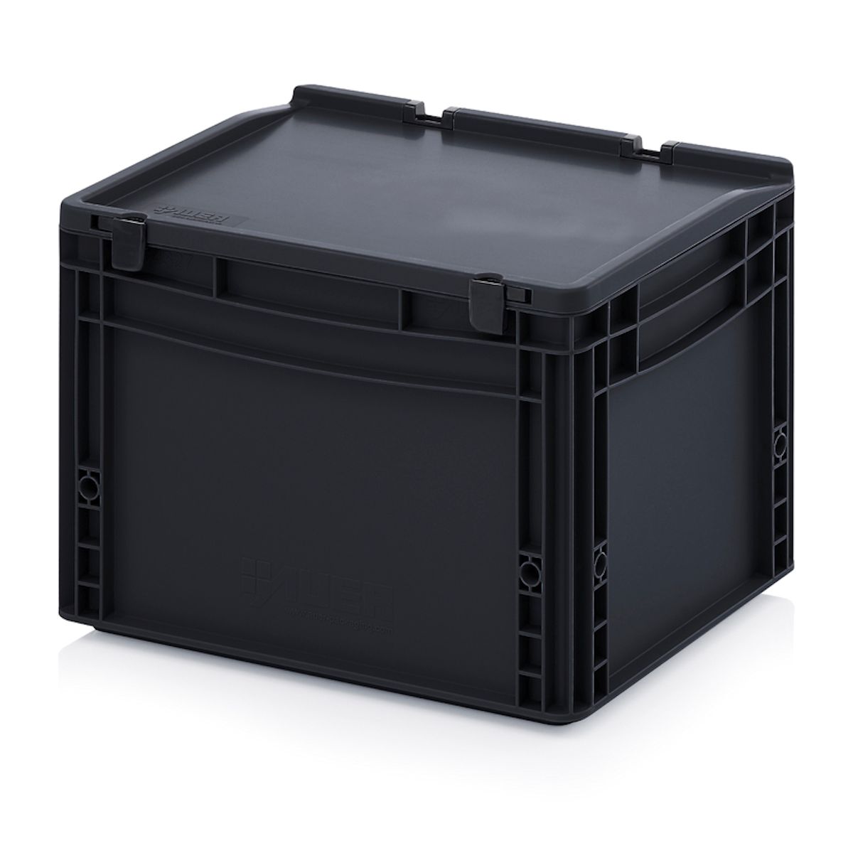 Termékek ▶ Vezetőképes euro tárolóládák▶ ESD EURO TÁROLÓLÁDÁK ZSANÉROS FEDÉLLEL