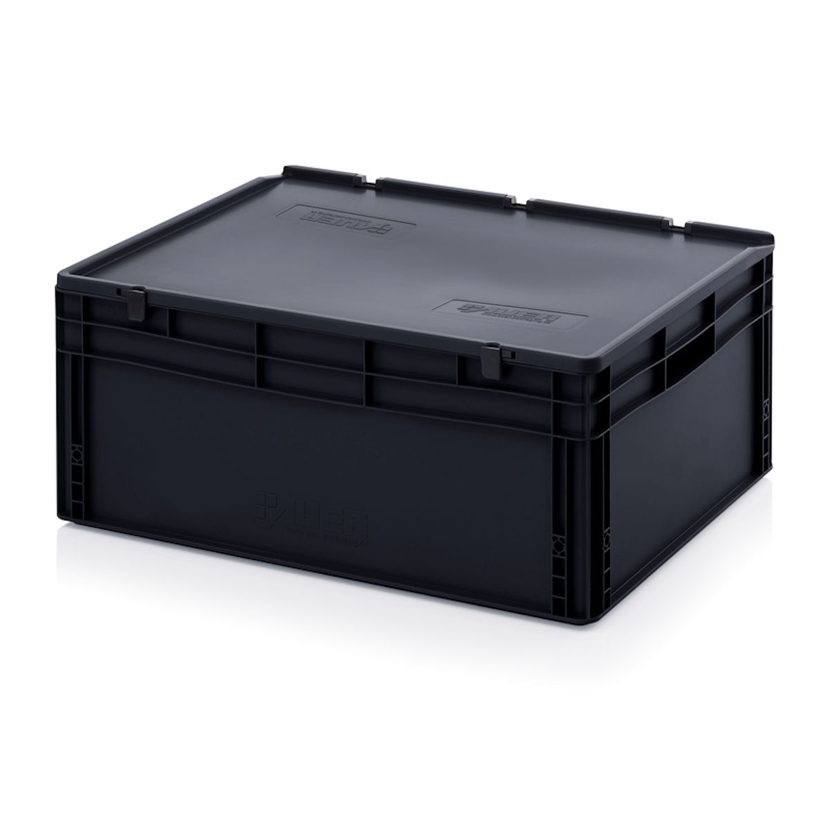 Termékek ▶ Vezetőképes euro tárolóládák▶ ESD EURO TÁROLÓLÁDÁK ZSANÉROS FEDÉLLEL